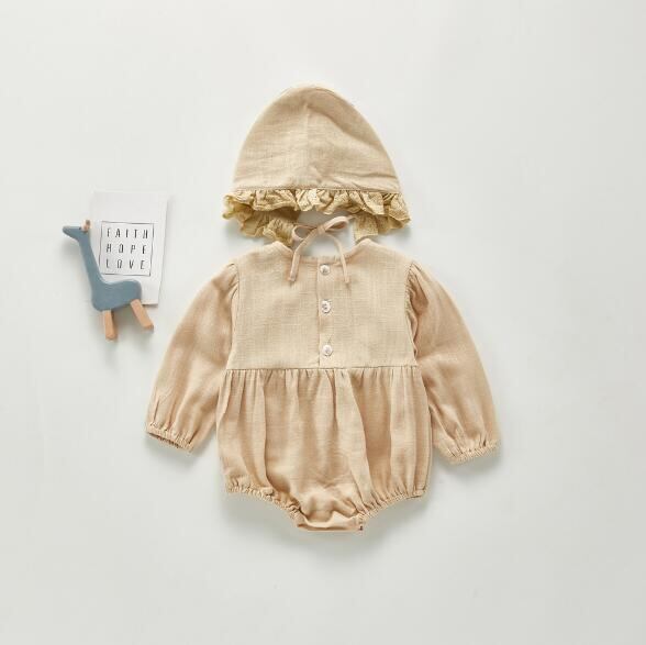帽子付き 秋 フリル ベビーロンパース 2点セット 女の子 男の子 ロンパース 2色 子供服 ベビー服 60cm/70cm/80cm/90cm/100cm n16etnzbdk411 | sreign
