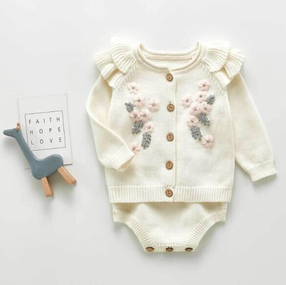 ニット ベビーロンパース カーディガン 2点セット 花 刺繍 女の子 男の子 ロンパース 子供服 ベビー服 60cm/70cm/80cm/90cm/100cm n16etnzbdk414 | sreign