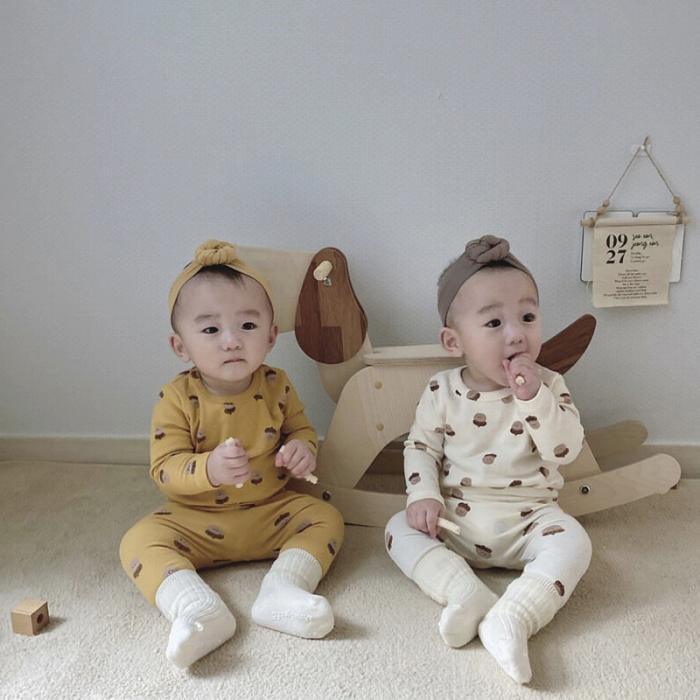 KD585 2021春夏 ルームウエア上下セット どんぐり ロンパース パンツ 2色